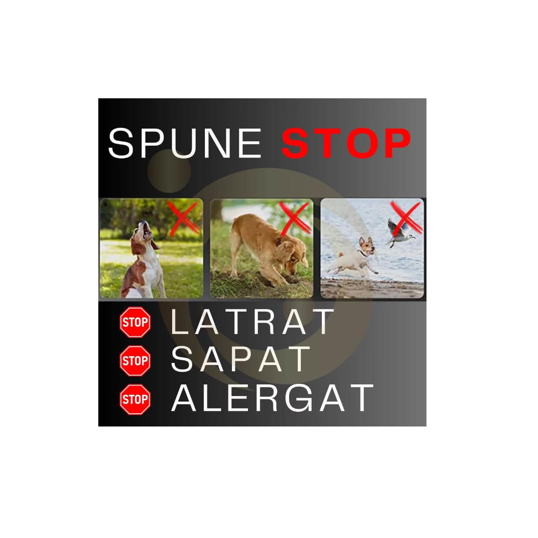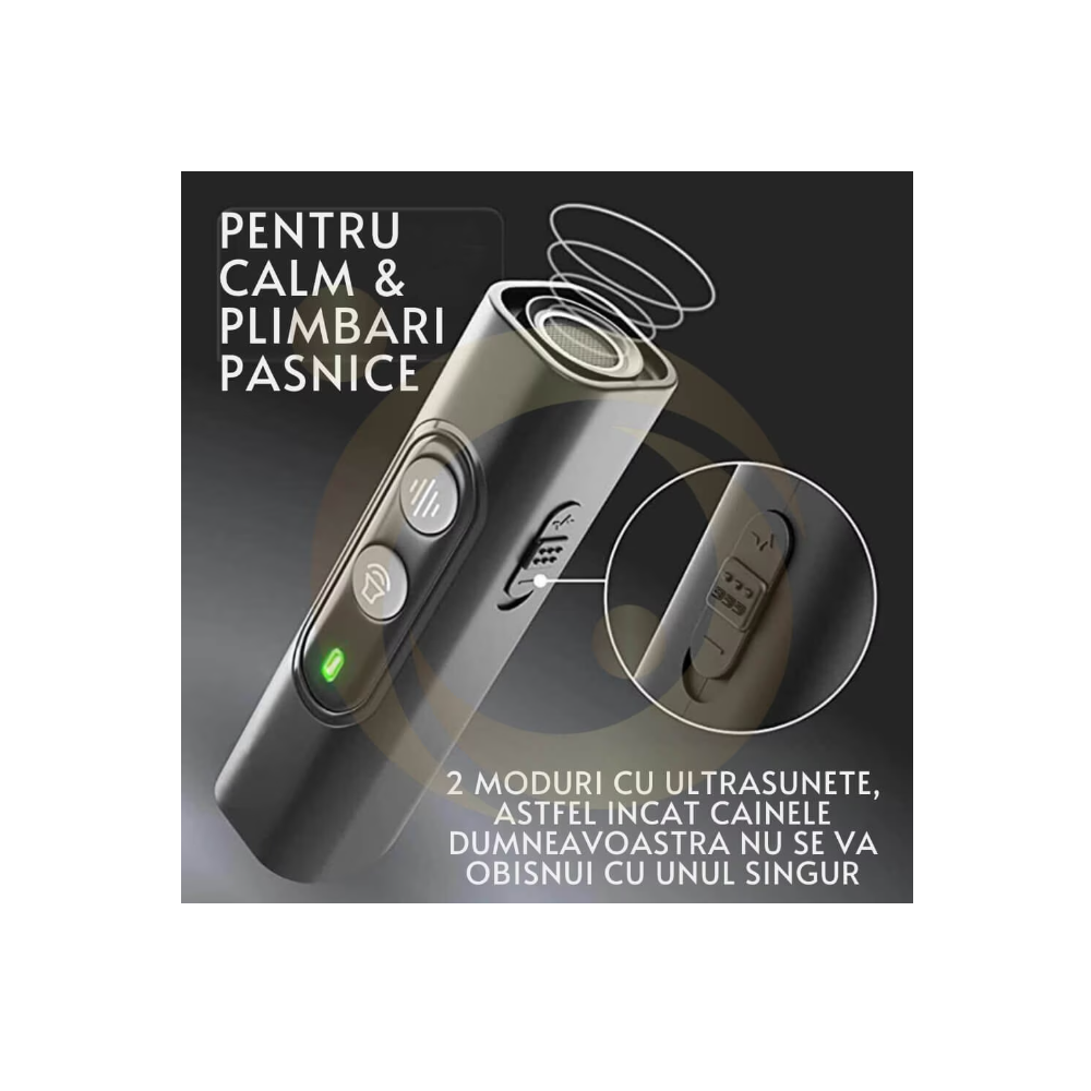 Dispozitivul cu ultrasunete pentru alungarea și dresarea câinilor, emite unde sonore pentru a interfera cu câinele astfel încât acesta să se simtă stimulat și să oprească comportamentul curent. De exemplu, poti opri un câine agresiv care vine la tine sau poți să-ți antrenezi propriul câine să renunțe la comportamentele nedorite, cum ar fi lătratul, săpatul, mușcatul etc. Dresajul unui câine poate fi făcut având cunoștințe pentru aceasta sau cu ajutorul unui instructor. Dispozitivul folosește o frecvență care este greu de perceput de auzul uman, dar este cea mai sensibilă frecvență pentru câini. Aceasta nu va afecta negativ auzul sau sănătatea câinelui.