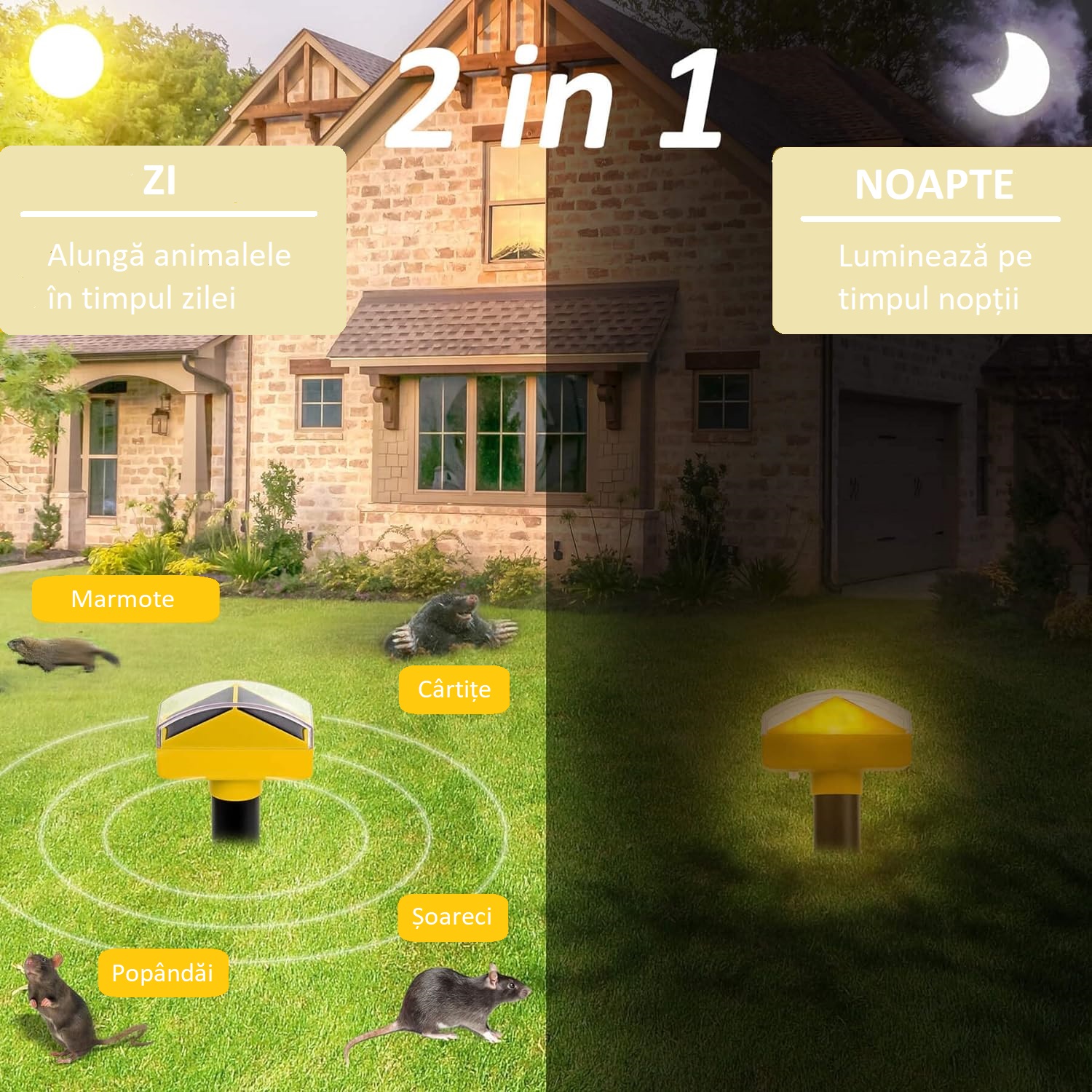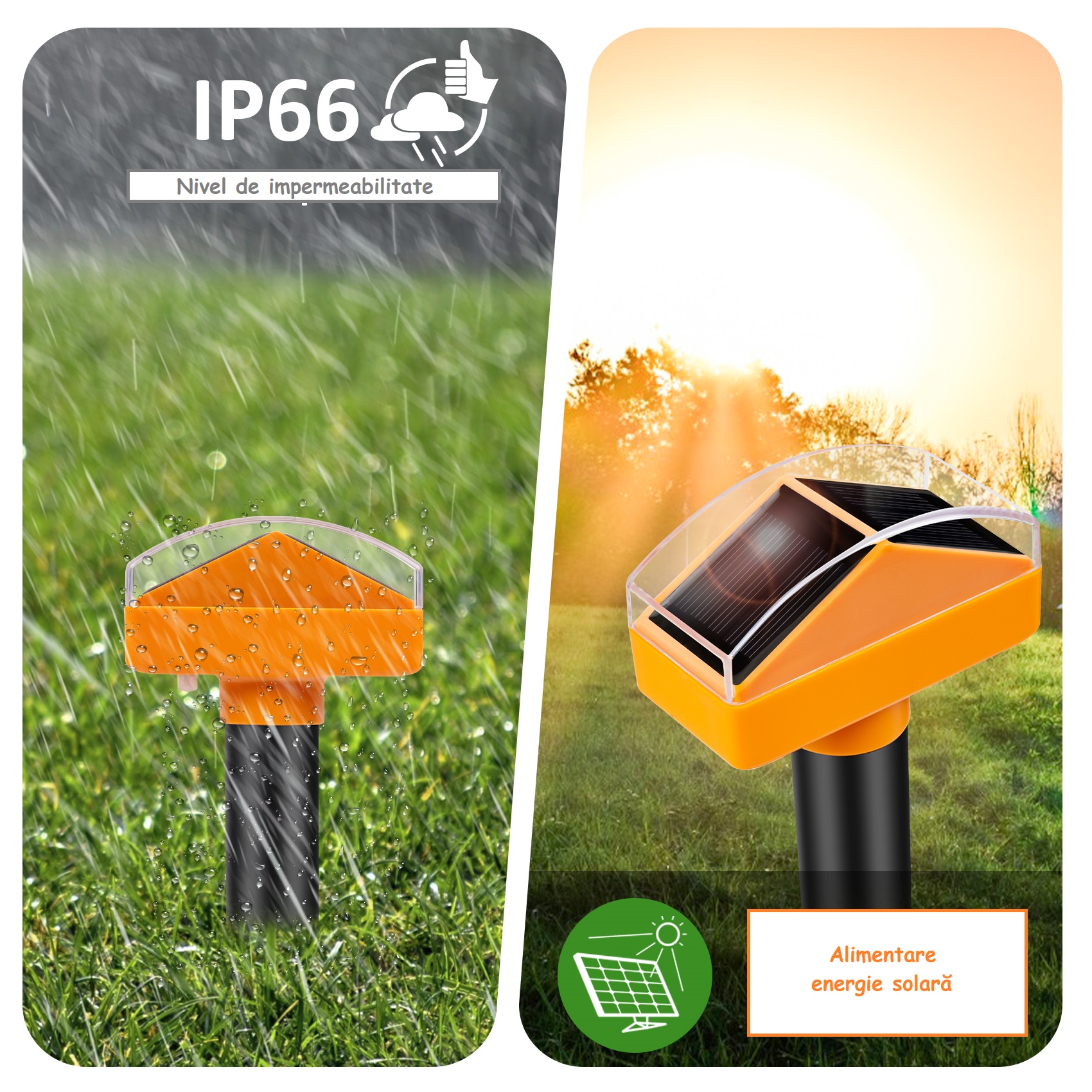 Set de 2 aparate solare ultrasonice contra cȃrtițelor și șerpilor cu acoperire totală de 1600m².