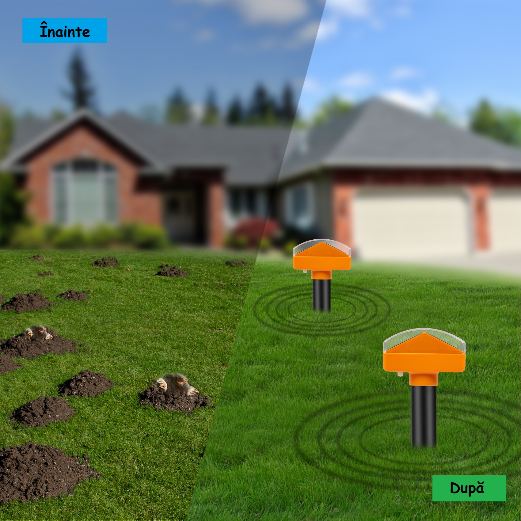 • Când folosiți mai multe dispozitive simultan, nu le așezați niciodată toate la colțurile terenului, lăsați o cale de evacuare a cârtițelor.