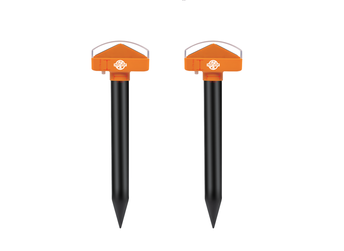 Dispozitivul Aparat sonic și solar pentru alungat cârtițe (SET 2 bucăți) – PEST STOP (PS-114B) oferă posibilitatea de a alunga cârtițe și alte vizuitoare fără a folosi otrava, activându-se după plasarea în sol. Pulsurile sonice se vor transmite prin pământ, obligând rozătoarele să părăsească zona.