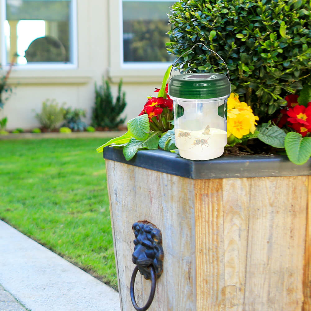 Deșurubați capacul și trageți-l până când capacul se oprește. Adăugați puțină apă, lipici, bere etc. pentru capturarea insectelor. Așezați capcana în afara locului în care sunt văzuți dăunătorii. Curățați capcana când este plină.